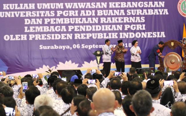 Pada kesempatan tersebut, Jokowi sapaan akrab Presiden RI menyerahkan sertifikat tanah untuk rakyat kepada 5.000 penerima yang berasal dari beberapa wilayah diantaranya Sidoarjo dan Gresik."Coba sertifikatnya diangkat tinggi-tinggi agar kelihatan semua sertifikat sudah diserahkan," tutur Jokowi.