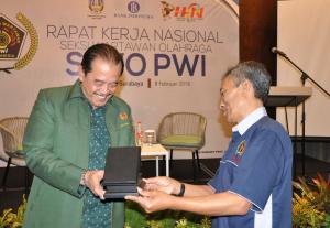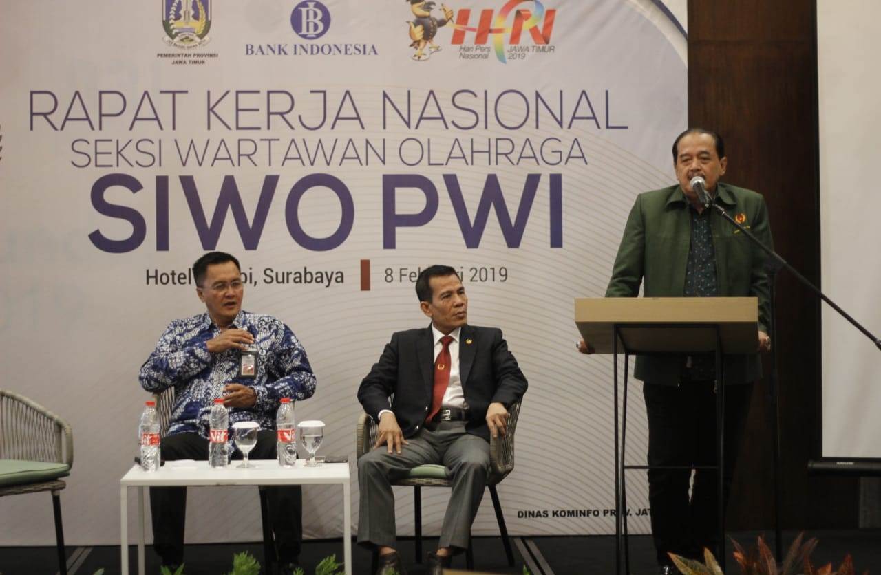 Rakernas dan Diskusi SIWO PWI 2019, dalam rangkaian Hari Pers Nasional (HPN) dibuka oleh Ketua KONI Jatim, Erlangga Satriagung, Kamis (7/2/2019), di Surabaya