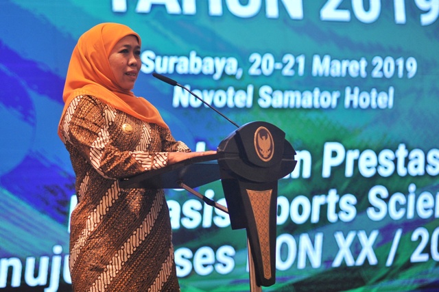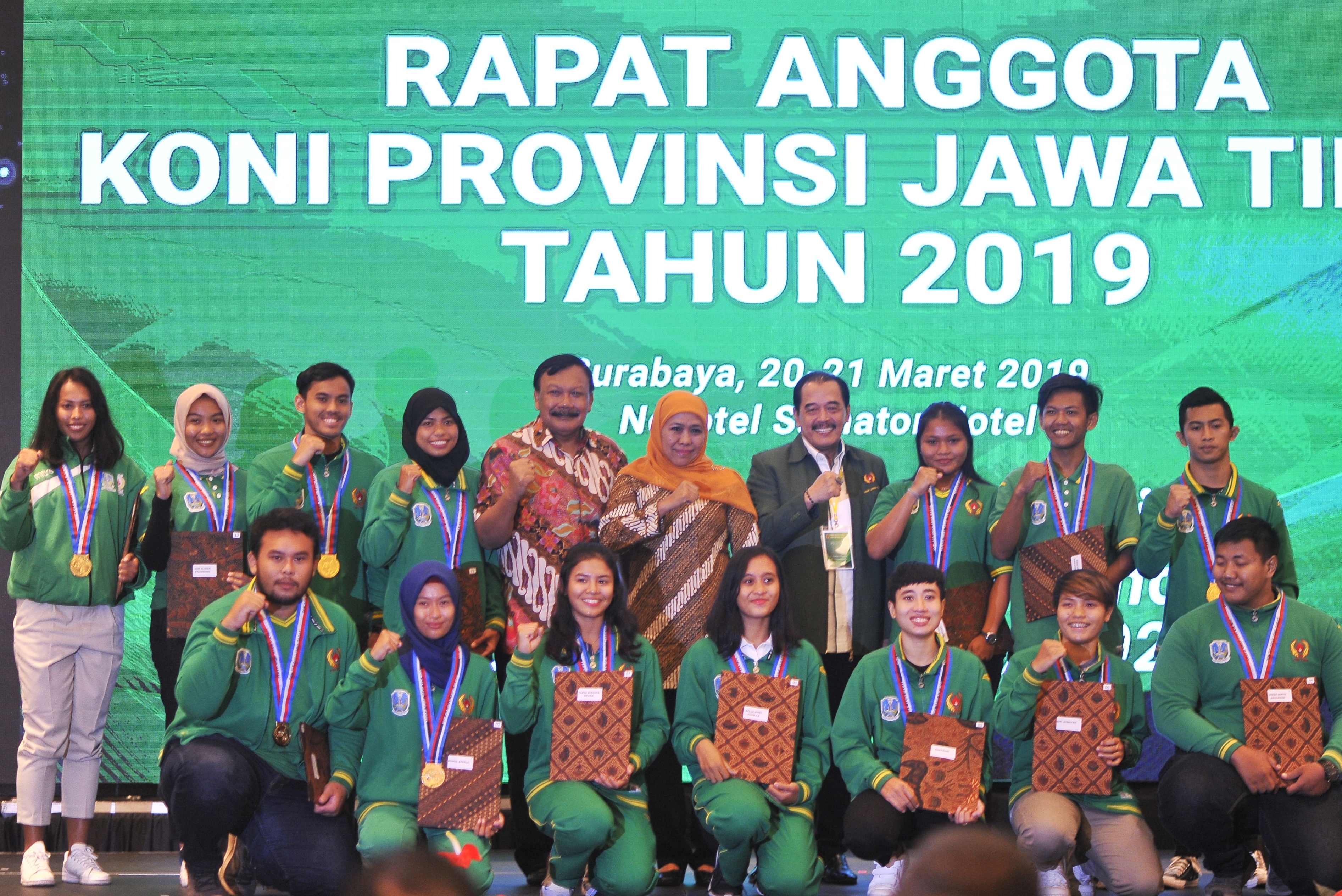 Gubernur Indarparawangsa memberikan beasiswa kepada atlet berprestasi, pada 20 Maret 2019, sekaligus membuka Rapat Anggota Tahunan (RAT) 2019 KONI Jatim.