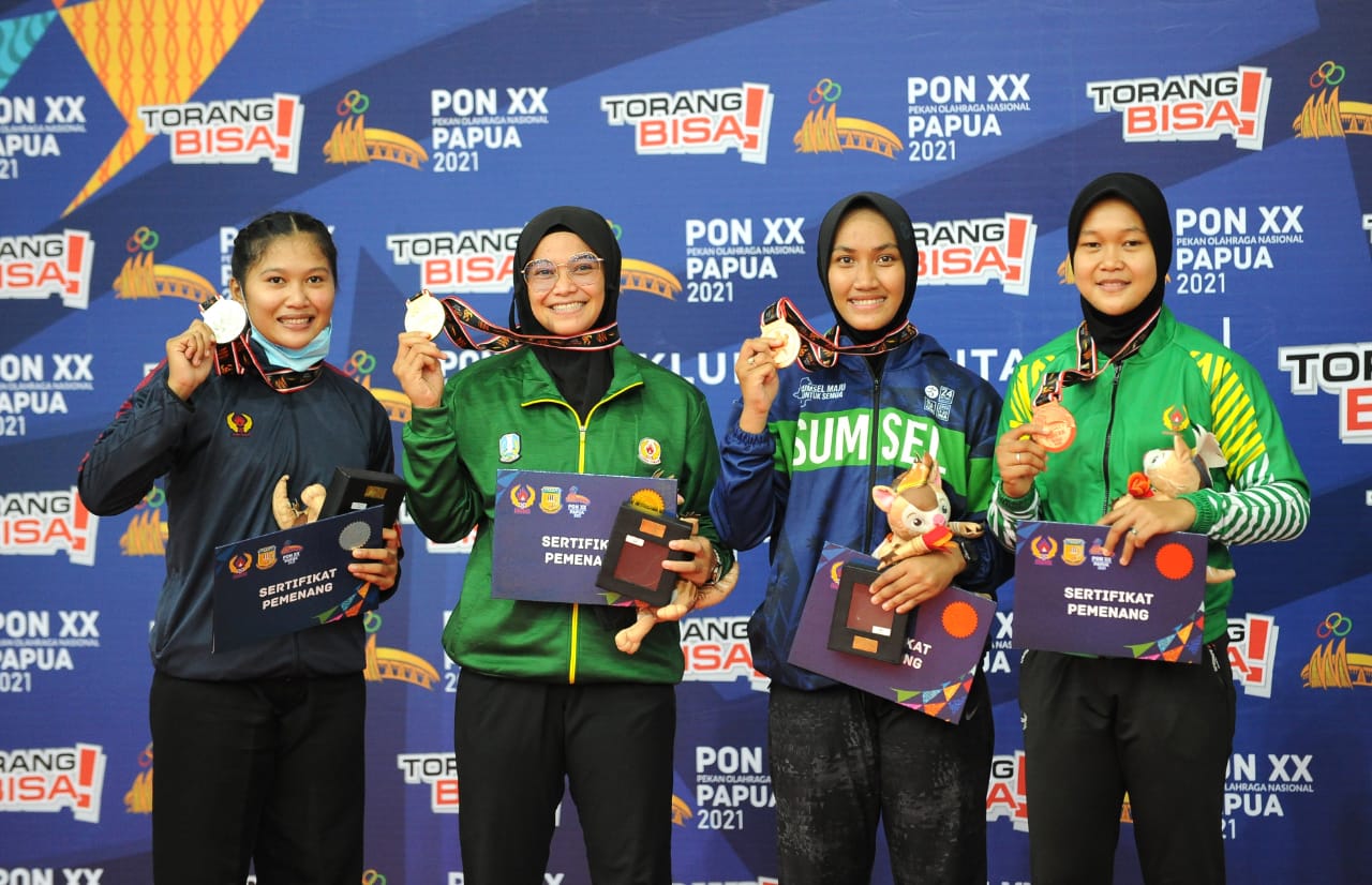 KANALSATU - Sarah Tria Monita tak terbendung di Pekan Olahraga Nasional (PON) XX Papua 2021. Pesilat andalan Jawa Timur ini berhak meraih medali emas saat mengkandaskan pesilat Jawa Barat, Shalima Lushiana partai final kelas E (65-70 Kg) Putri yang berlangsung di GOR Toware, Kabupaten Jayapura, Papua, Selasa (12/10/2021).