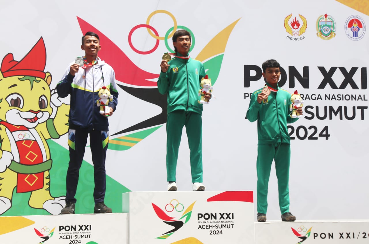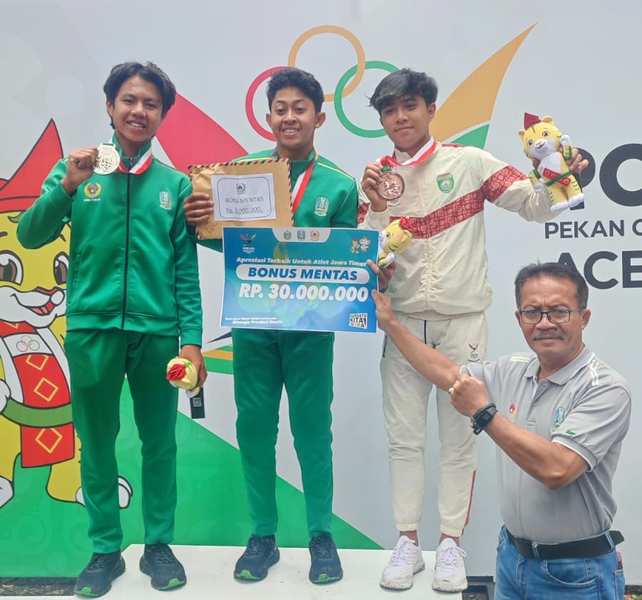 KANALSATU - Tiga medali emas berhasil diraih kontingen Jawa Timur (Jatim) dari cabang olahraga (cabor)…