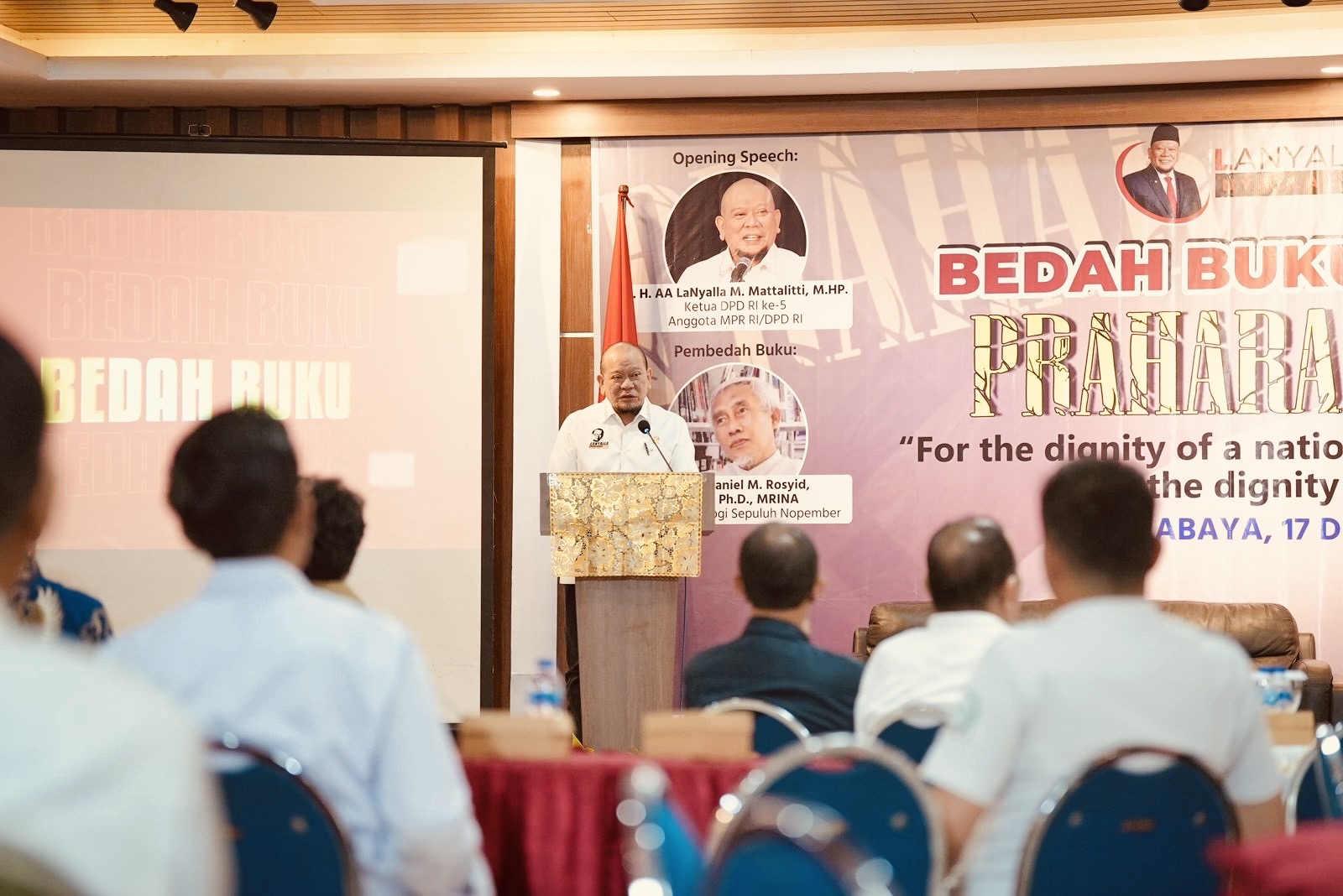 KANALSATU - Senator asal Jawa Timur, AA LaNyalla Mahmud Mattalitti, membuka bedah buku Prahara Bangsa…