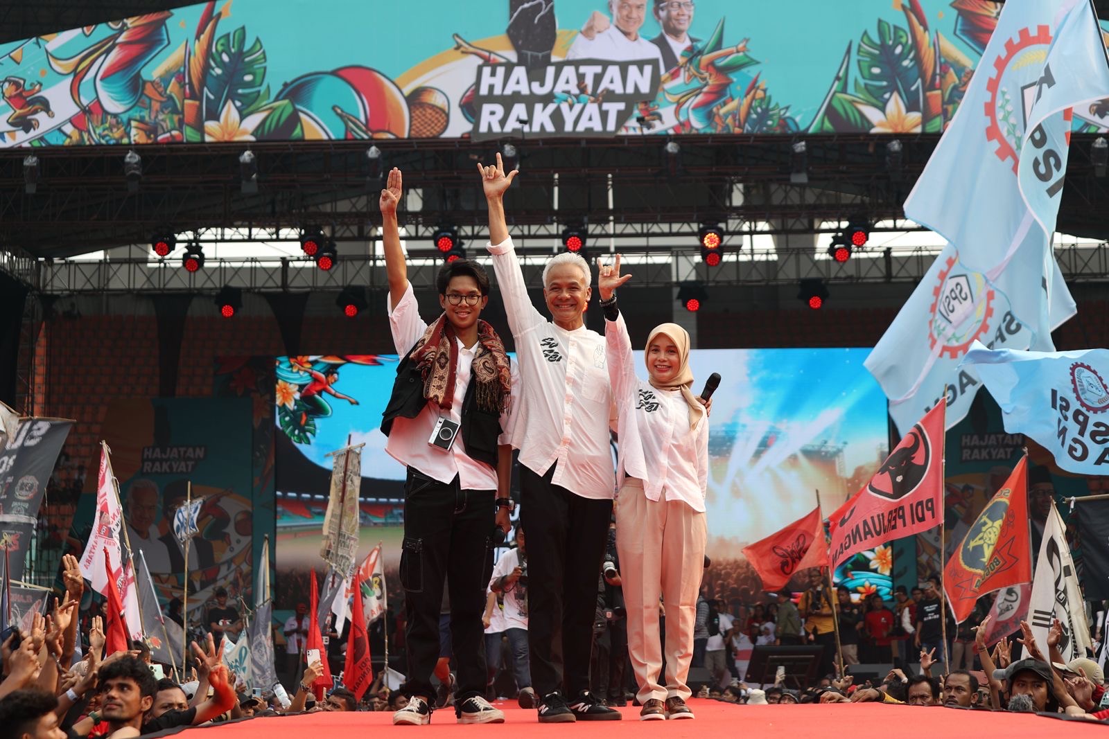 Sabtu, 10 Februari 2024 | 12:10 WIBGanjar, Atikoh dan Alam, Bakar Semangat Puluhan Ribu Massa di Hajatan Rakyat Bogor