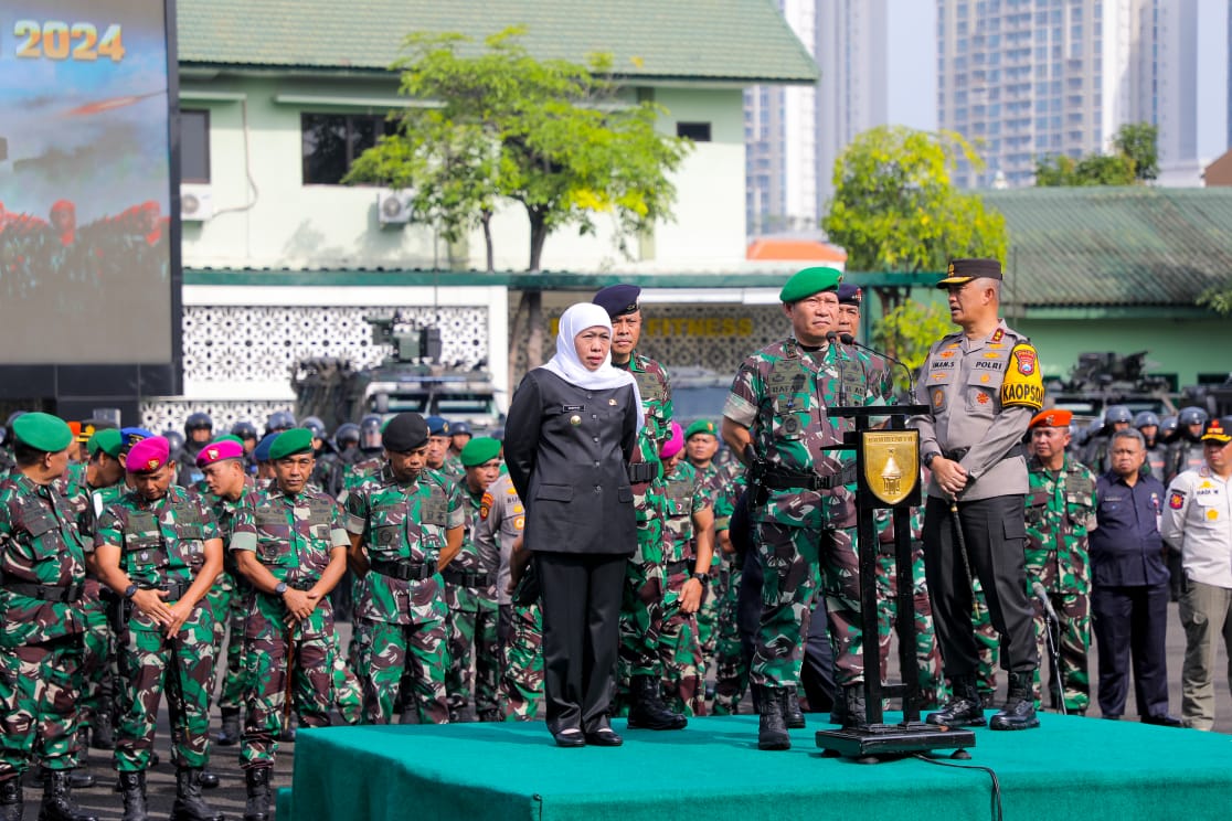 KANALSATU - Gubernur Jawa Timur Khofifah Indar Parawansa menghadiri Apel Gelar Pasukan Kesiapan Pengamanan Pemilu…