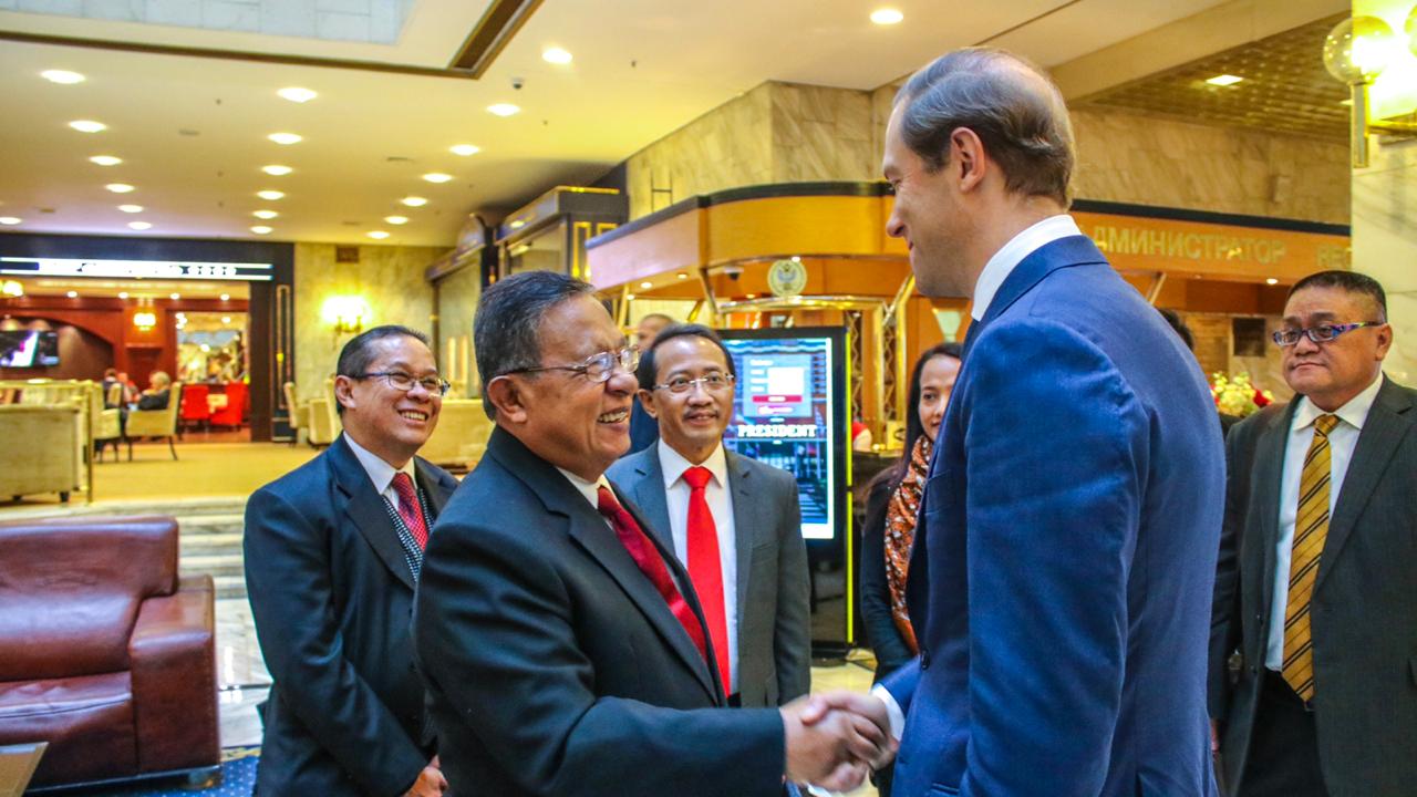 KANALSATU.COM - Menko Perekonomian RI Darmin Nasution menggelar pertemuan bilateral dengan Menteri Perindustrian dan Perdagangan Rusia Denis Manturov. Pertemuan bilateral Sidang Komisi Bersama (SKB) ke-12 Kerja Sama Perdagangan, Ekonomi dan Teknik Indonesia-Rusia di Moskow, Jumat (26/10). SKB merupakan salah satu mekanisme peningkatan kerja sama bilateral Indonesia dengan Rusia.