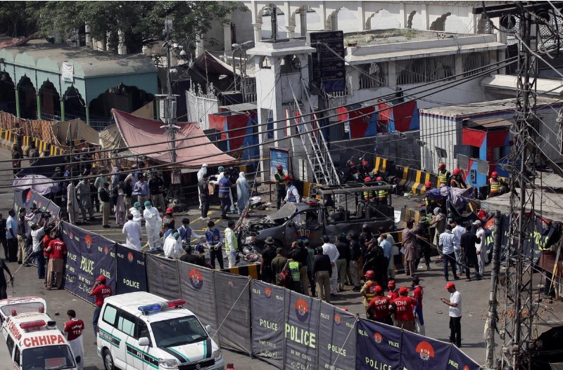 Ledakan ini sendiri terjadi sehari setelah ritual ibadah bulan suci Ramadan umat muslim dimulai. Ledakan terjadi sendiri terjadi di dekat Data Darbar, salah satu tempat peribadatan umat muslim Sufi terbesar di Asia Selatan.