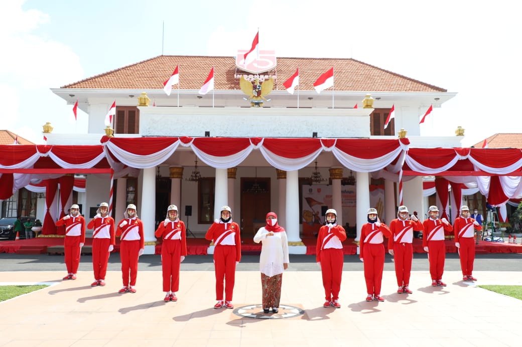 "Di tengah suasana pandemi Covid-19, peringatan HUT Kemerdekaan Ke-75 RI kita laksanakan dengan sederhana, namun tetap khidmat dan tertib," tegas Khofifah.