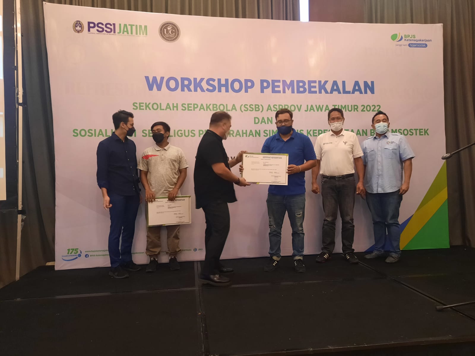 Dalam kesempatan itu, dilakukan sosialisasi sekaligus penyerahan simbolis kepesertaan BP Jamsostek bagi seluruh anggota SSB di Jatim. Mulai dari pemain, pelatih, ofisial maupun pengurus.