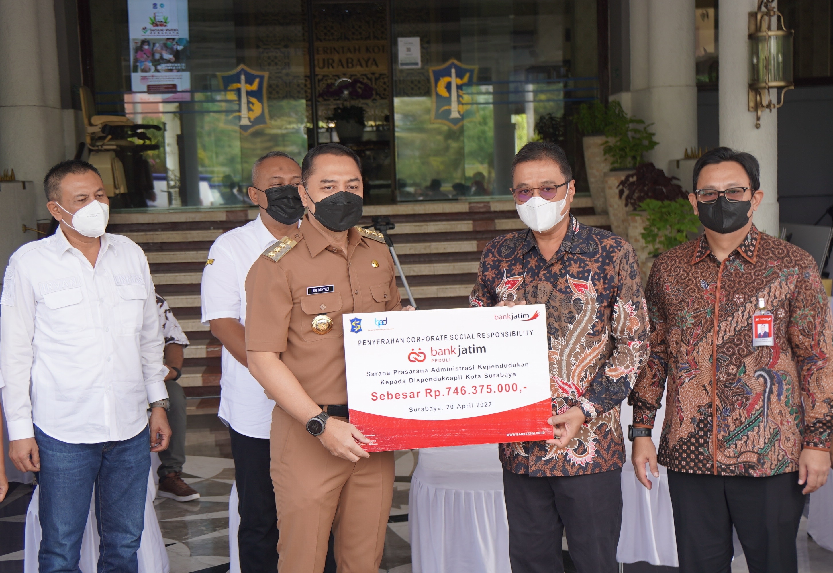 Bank Jatim Serahkan CSR Penunjang Layanan Kependudukan dan UMKM ke Pemkot Surabaya