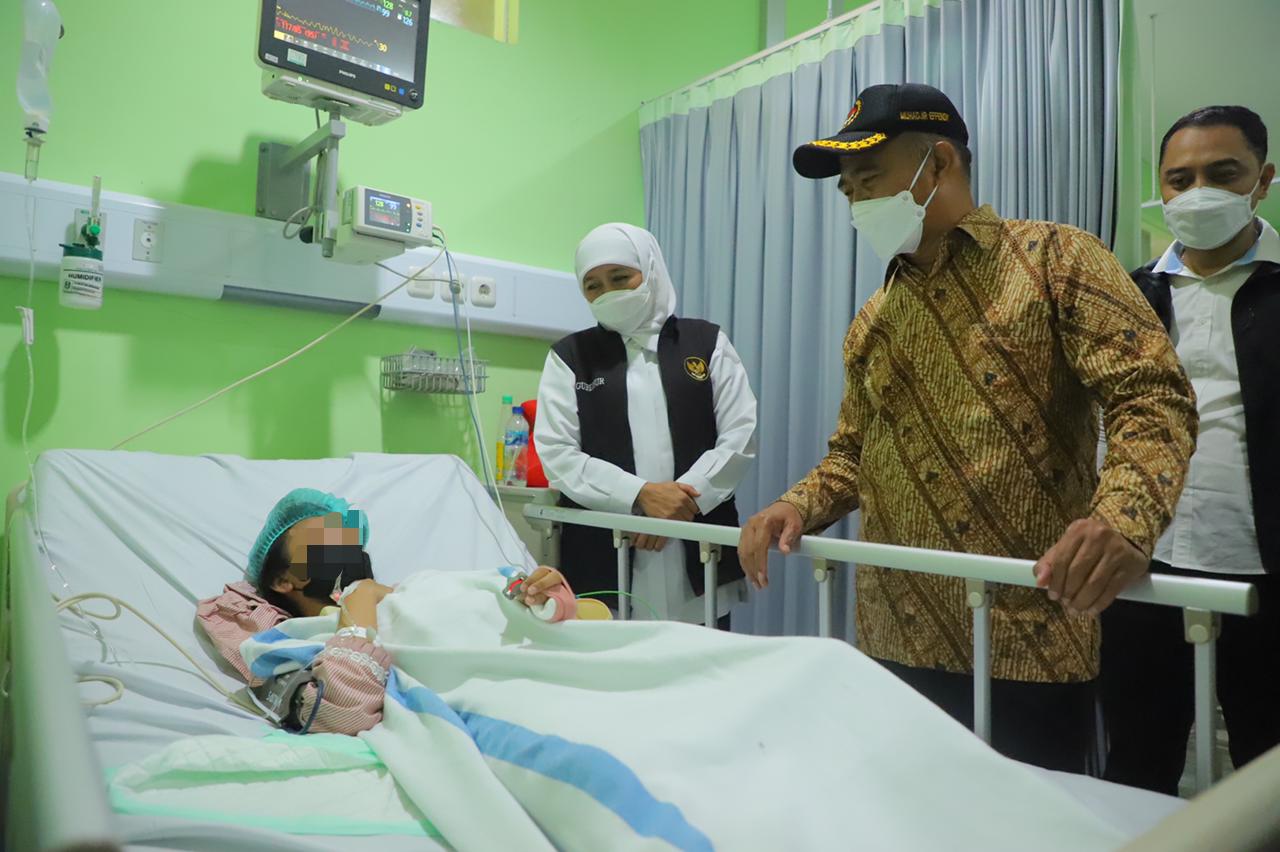 Didampingi Direktur RSUD Dr. Soetomo dr. Joni Wahyuhadi serta Walikota Surabaya Ery Cahyadi, Gubernur Khofifah bersama Menko PMK langsung menuju ruang Instalasi Gawat Darurat (IGD) RSUD Dr Soetomo. Tiga korban dirawat di IGD, dan empat orang lainnya menjalani perawatan di kamar rawat inap akibat patah tulang.