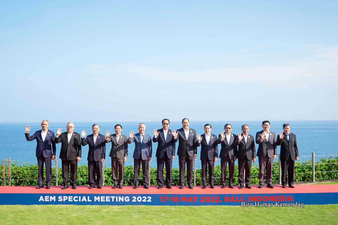 Menteri Perdagangan RI, Muhammad Lutfi menggelar Pertemuan Khusus Para Menteri Ekonomi ASEAN (ASEAN Economic Ministers Special Meeting) yang dilaksanakan di Bali, Rabu (18/5 2022). (dok humas)