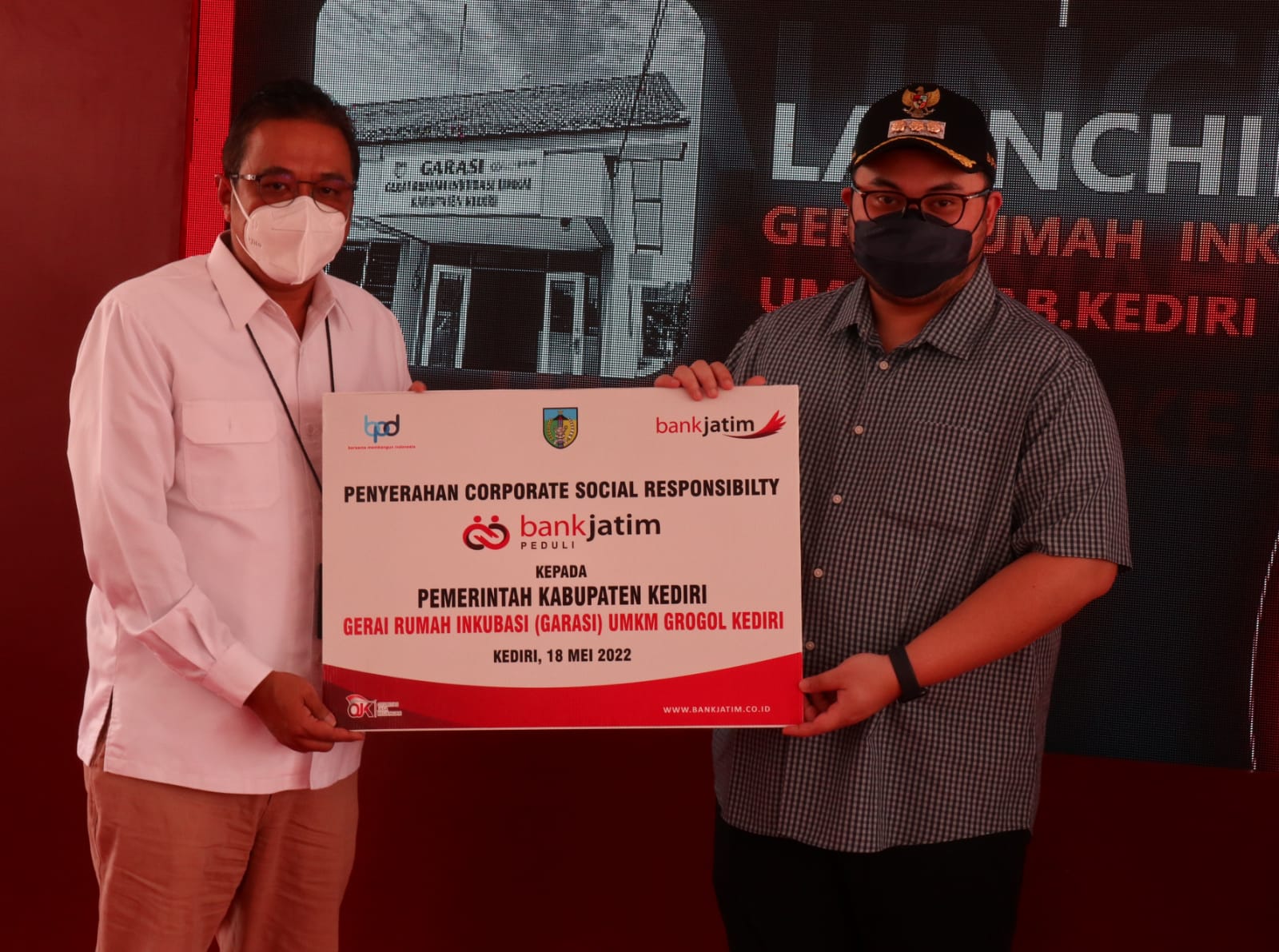KANALSATU - Sebagai bentuk Tanggung Jawab Sosial Perusahaan kepada masyarakat, PT Bank Pembangunan Daerah Jawa Timur Tbk. (bankjatim) menyerahkan bantuan Corporate Social Responsibility (CSR) Bank Jatim peduli berupa Pembangunan Gerai Rumah Inkubasi (GARASI) UMKM.