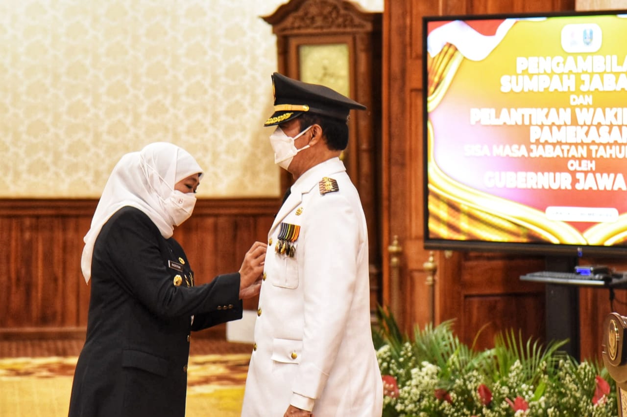 KANALSATU - Gubernur Jawa Timur Khofifah Indar Parawansa melantik RB. Fattah Jasin menjadi Wakil Bupati Pamekasan untuk sisa masa jabatan tahun 2018-2023 di Gedung Negara Grahadi Surabaya, Senin (30/5/2022) malam.