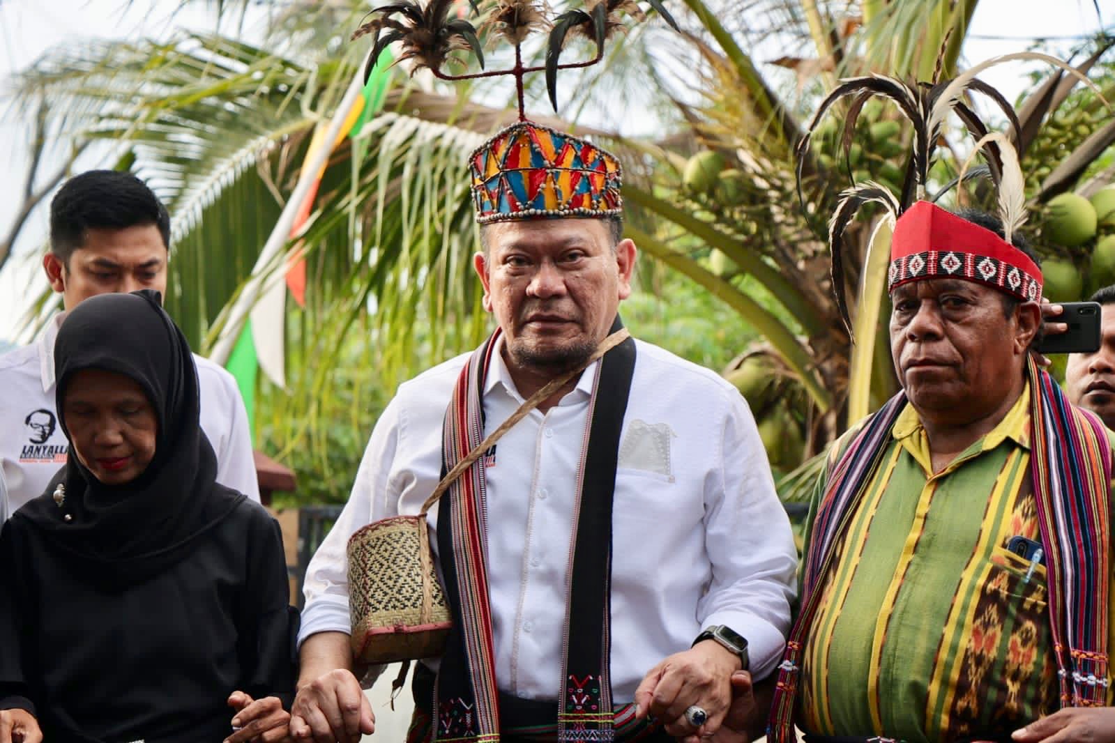 KANALSATU - Ketua DPD RI, AA LaNyalla Mahmud Mattalitti, dianugerahi gelar Kaletabata Kerajaan Kui saat berkunjung ke Kerajaan Kui di Kabupaten Alor, Nusa Tenggara Timur (NTT).