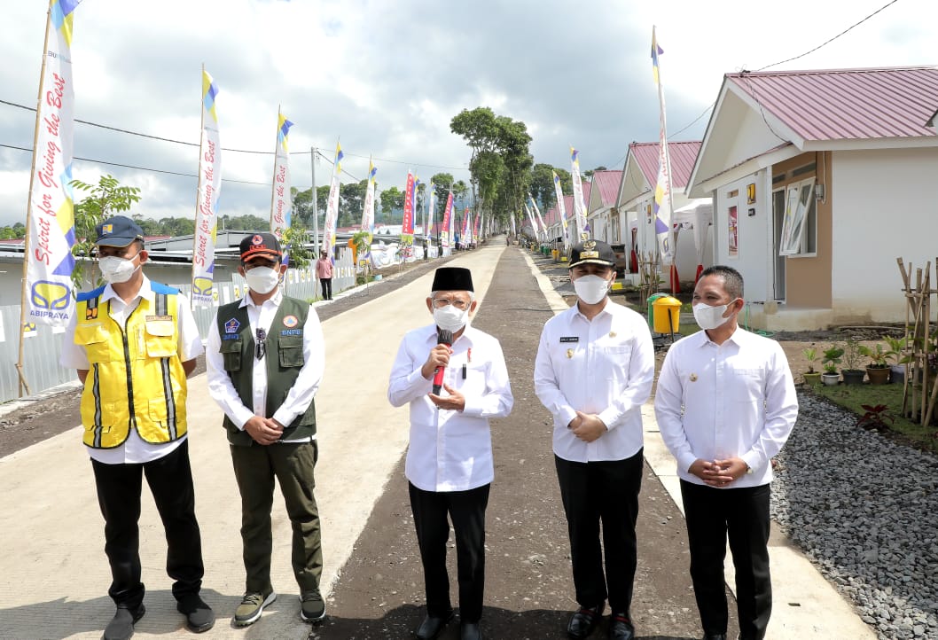 Saat dijumpai awak media, Wapres RI Ma'ruf Amin menjelaskan, pemerintah pusat dan daerah telah menunjukkan komitmen kepada penyintas erupsi gunung Semeru dengan membangun 1.951 Huntara dan Huntap.
