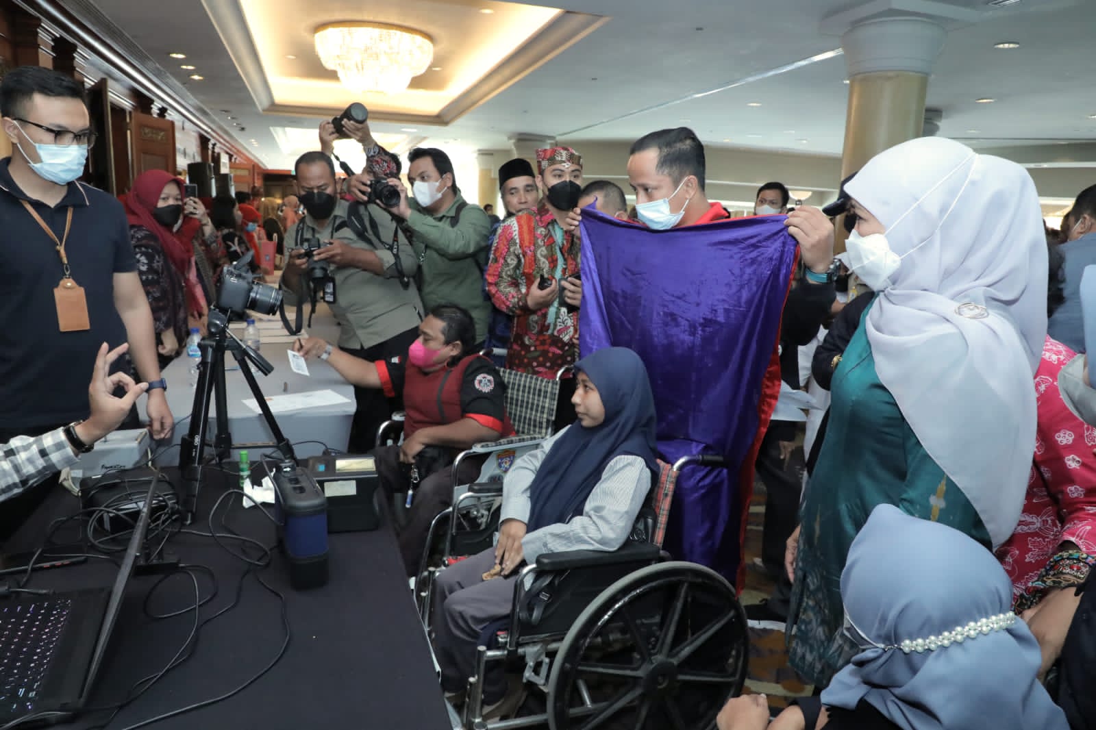 Pada saat yang sama juga dilakukan penyerahan dokumen kependudukan bagi penyandang disabilitas berupa Kartu Identitas Anak (KIA), KTP-el dan dokumen kependudukan lainnya di Surabaya, Kamis (16/6/2022).