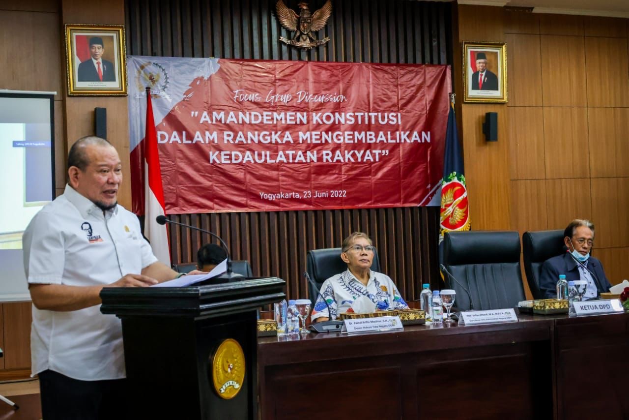 Penegasan itu disampaikan saat membuka Focus Group Discussion tentang ‘Amandemen Konstitusi Dalam Rangka Mengembalikan Kedaulatan Rakyat’, di Kantor Daerah DPD RI Provinsi DIY, Kamis (23/6/2022).
