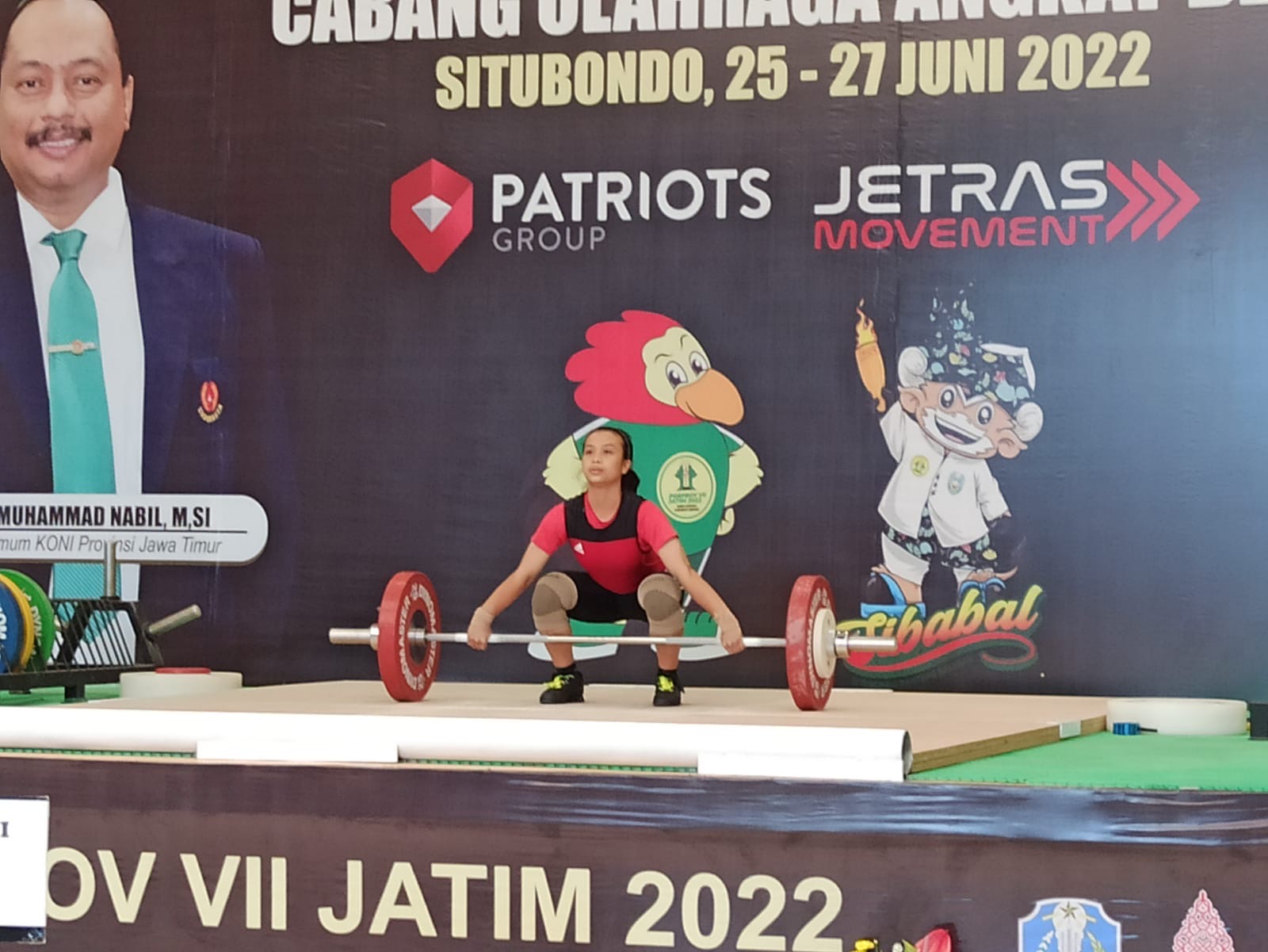 KANALSATU - Kehadiran lifter asal Pacitan, Luluk Diana dalam pembukaan pertandingan cabor angkat besi Porprov Jatim VII/2022 di Aula SMPN I Situbondo, menarik perhatian atlet dan offisial daerah lain.