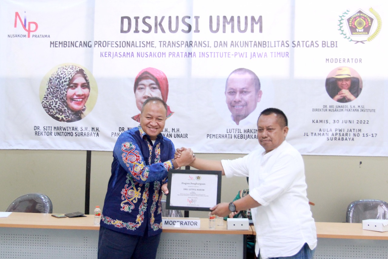 Diskusi yang dipandu moderator Ari Junaedi (Direktur Nusakom Pratama Institute) itu, digelar untuk menyikapi masih banyaknya pertanyaan dan kritik halayak terkait kinerja Satuan Tugas (Satgas) Bantuan Likuiditas Bank Indonesia (BLBI), yang diberi mandat oleh negara untuk menyelesaikan hak tagih negara atas kasus BLBI.