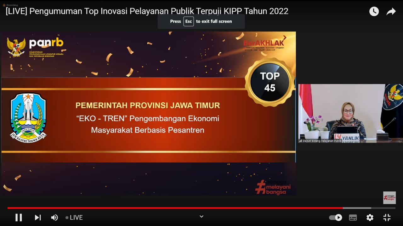 Berhasil Ciptakan 4.125 Lapangan Kerja, EKO-TREN Jatim Raih Top 45 KIPP 2022 KemenPANRB
