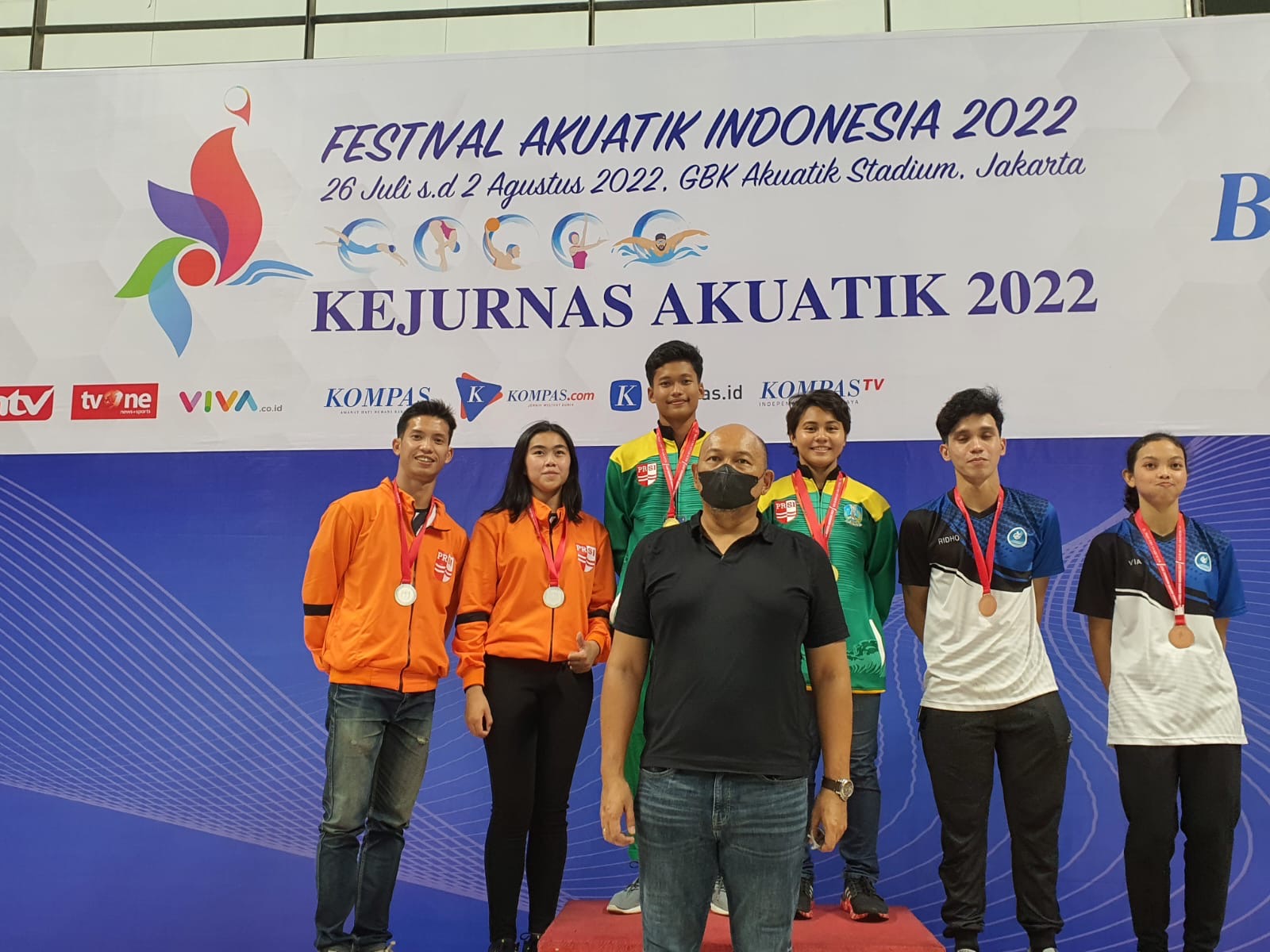 KANALSATU - Pada hari pertama, Kejurnas Festival Akuatik Indonesia (FAI) 2022, cabang olahraga (cabor) loncat indah, kontingen Jawa Timur (Jatim) berhasil mengoleksi 2 medali emas.