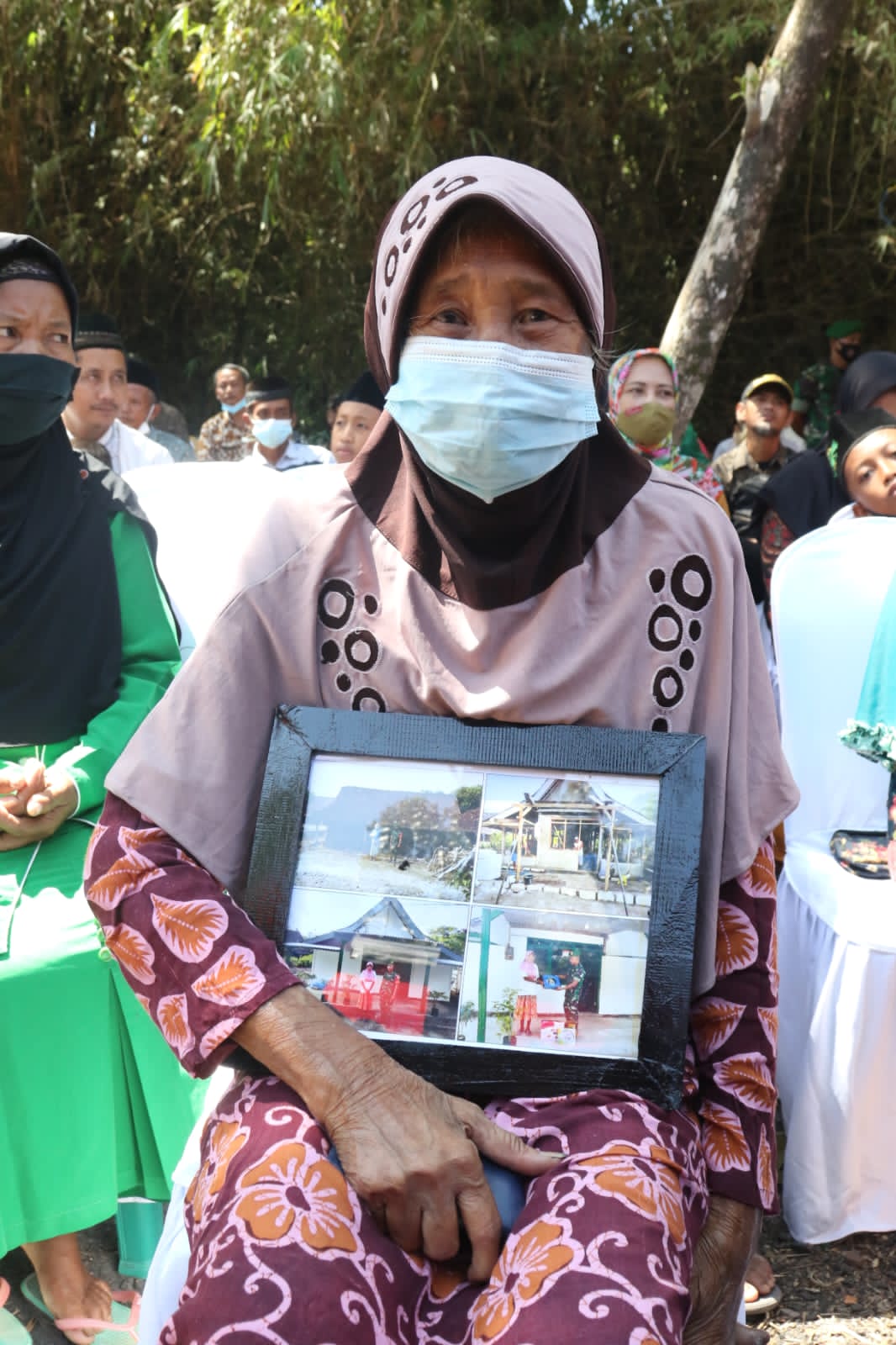 KANALSATU - Senyum bahagia mengembang di wajah Sumani, warga Dusun Bendo, Desa Tempuran, Kec. Paron, Kab. Ngawi, saat rumahnya disambangi oleh Gubernur Jawa Timur Khofifah Indar Parawansa dan Pangdam V Brawijaya Mayjen TNI Nurchahyanto, Kamis (4/8/2022).
