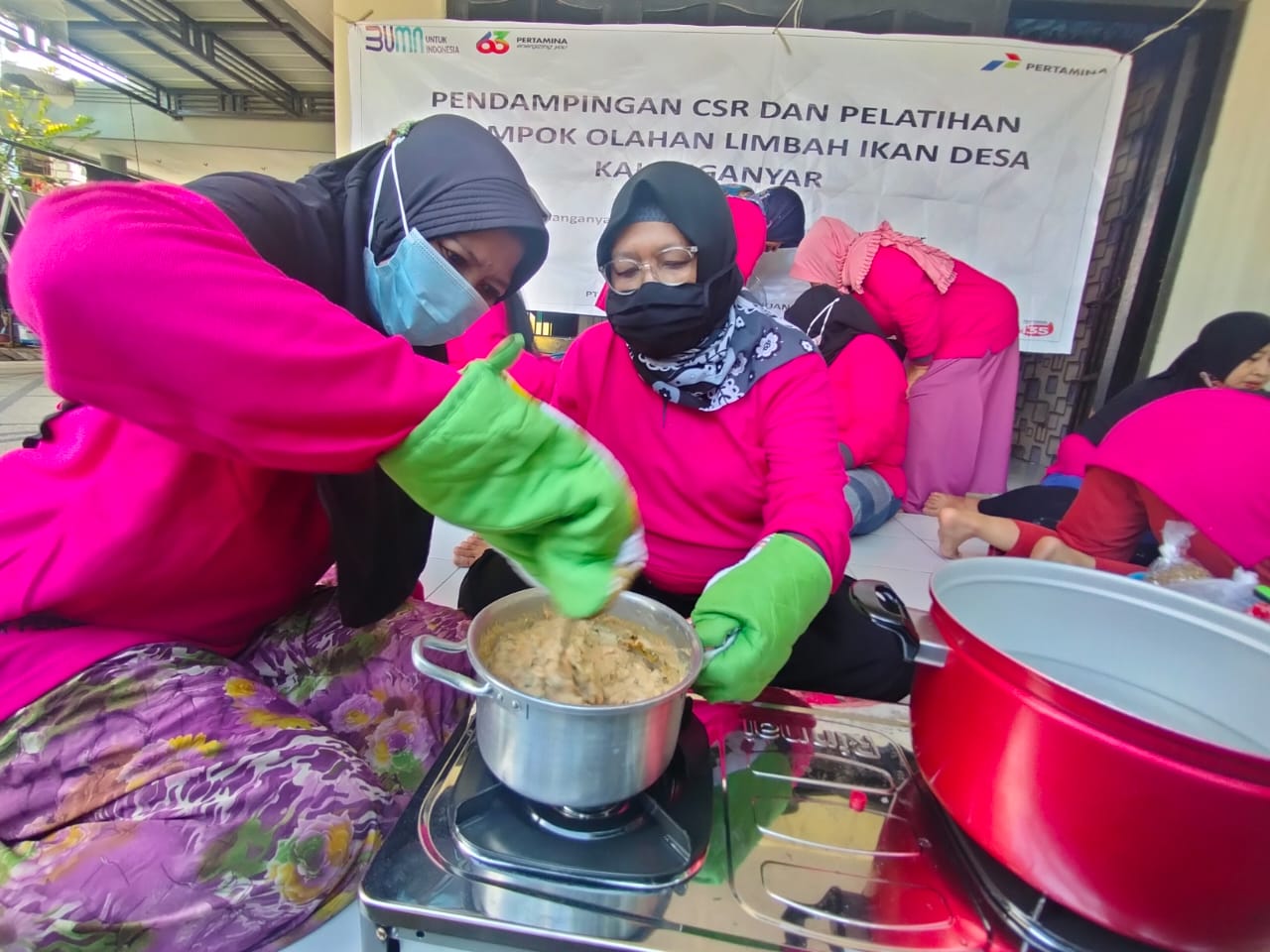 Program CSR TJSL yang dilakukan Pertamina DPPU Juanda berupa Pengembangan UMKM Produk Olahan Limbah Ikan di Desa Kalanganyar, Sidoarjo.