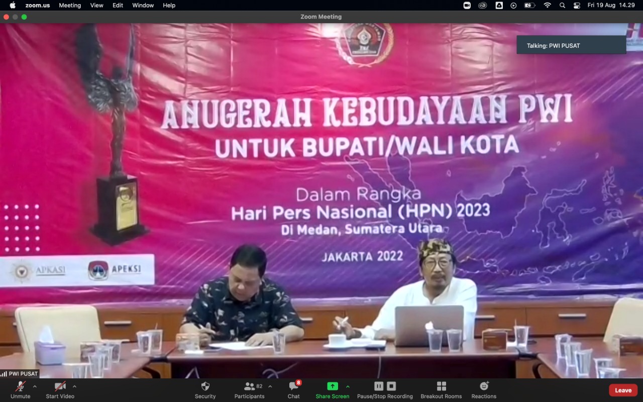 Hal itu tergambar dari semangat para bupati/walikota dalam zoominar sosialisasi Anugerah Kebudayaan PWI Pusat 2023, yang digelar 19 Agustus 2022 lalu.