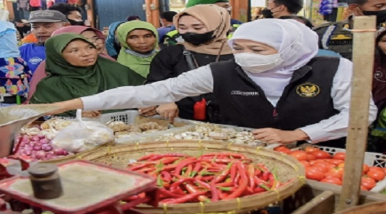 Gubernur Khofifah mengecek langsung harga berbagai komoditas kebutuhan masyarakat di pasar.