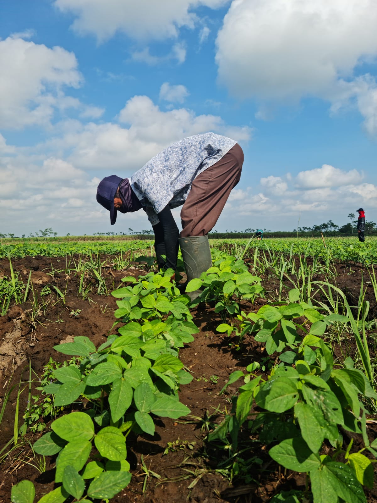 Diperkirakan panen perdana akan dilaksanakan akhir bulan ini dengan prakiraan taksasi produktivitas sebesar 2.0000 Kg/Ha. Saat ini tanaman kedele sudah fase pengisian polong.