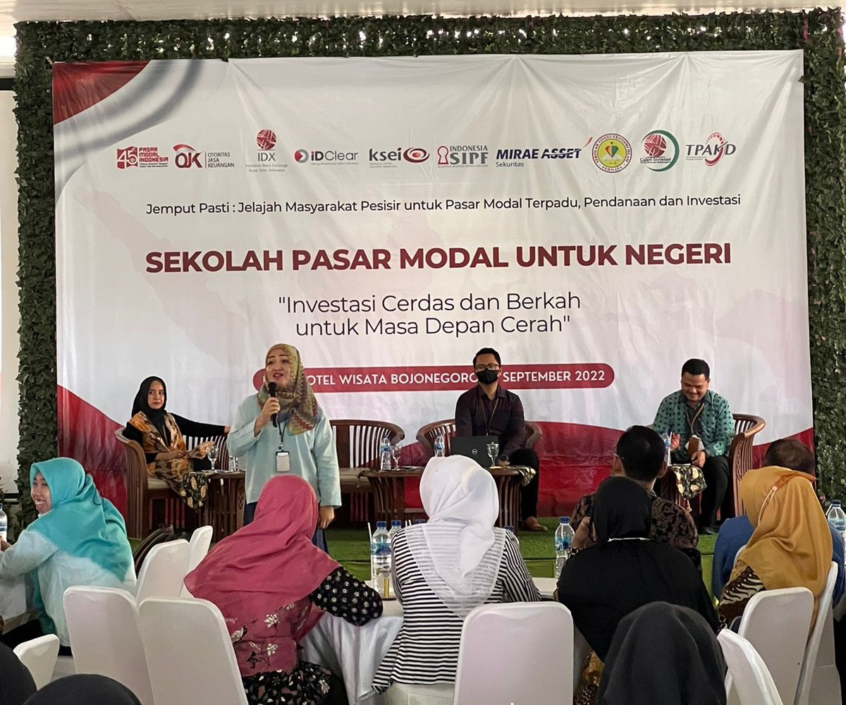 KANALSATU - Dalam upaya meningkatkan literasi masyarakat di pasar modal baik dari sisi investasi maupun pendanaan, Kantor Perwakilan Bursa Efek Indonesia (BEI) Jawa Timur terus melakukan kegiatan sosialisasi dan edukasi pasar modal. Pada bulan Agustus-Oktober 2022, BEI bersama dengan Otoritas Jasa Keuangan (OJK) Kantor Regional 4 Jawa Timur, serta didukung oleh Perusahaan Sekuritas serta emiten menggelar JEMPUT PASTI (Jelajah Masyarakat Pesisir untuk Pasar Modal Terpadu, Pendanaan dan Investasi).