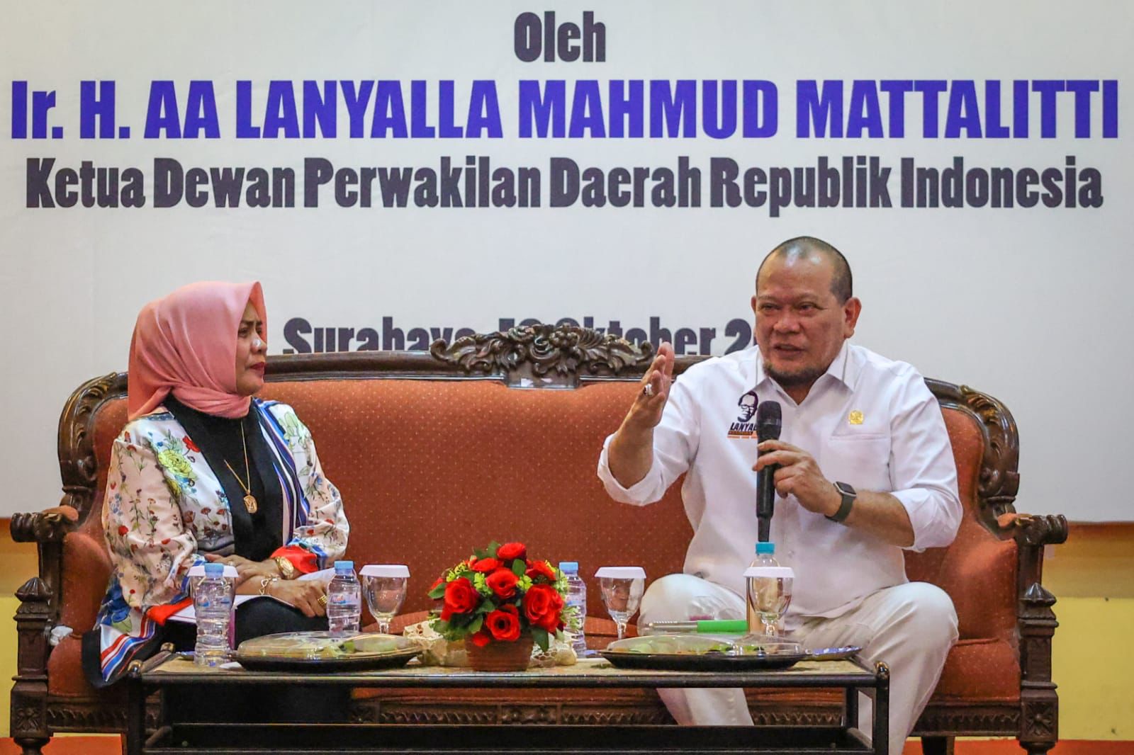 KANALSATU - Ketua DPD RI, AA LaNyalla Mahmud Mattalitti, menerima aspirasi dari sivitas akademika Universitas Dr Soetomo (Unitomo), Surabaya, Jawa Timur terkait renovasi kampus.