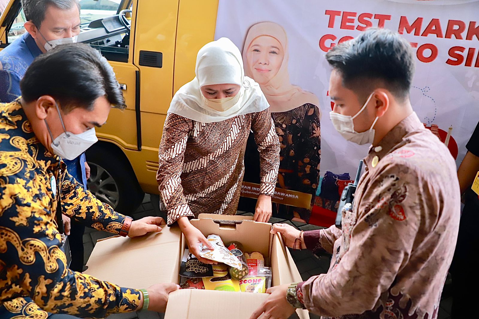 Pelepasan ini ditandai dengan penyerahan produk dan dokumen Ekspor Test Market UMKM produk olahan pangan oleh Gubernur Khofifah kepada kurir ekspedisi.