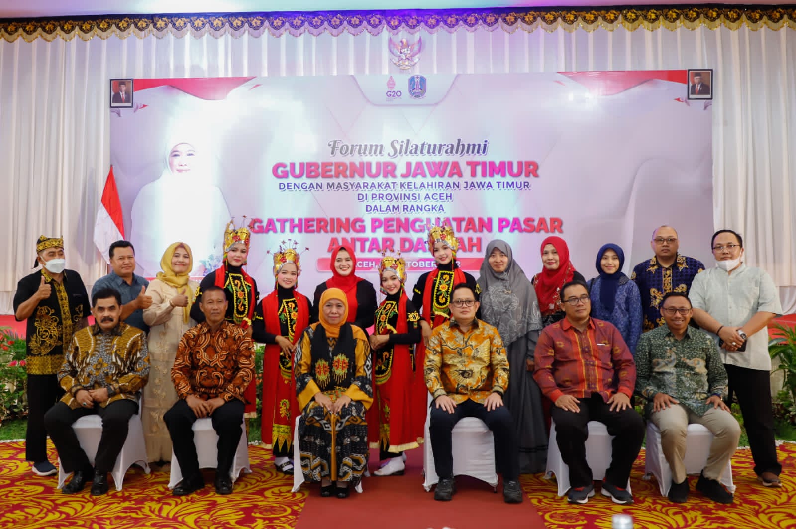 KANALSATU - Menguatkan hubungan perdagangan antar daerah, Gubernur Jawa Timur Khofifah Indar Parawansa secara khusus bersilaturahmi dengan masyarakat kelahiran Jatim di provinsi Nangroe Aceh Darussalam, di Amel Convention Banda Aceh, Senin (24/10/2022) malam.