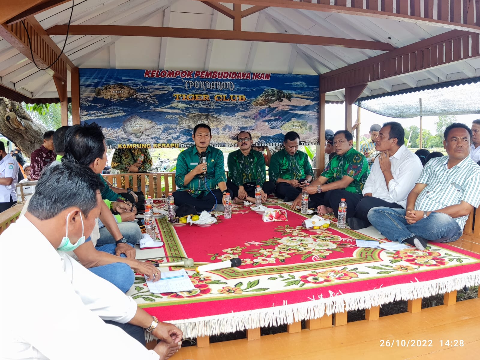 KANALSATU - Bupati Lamongan Yuhronur Efendi mengunjungi langsung tambak budidaya ikan kerapu di Desa Labuhan, Brondong Kabupaten Lamongan (26/10). Dalam kunjungannya, Bupati Lamongan yang akrab disapa pak YES ini melakukan tinjauannya terhadap beberapa tambak ikan kerapu dan melakukan panen langsung Ikan Kerapu.