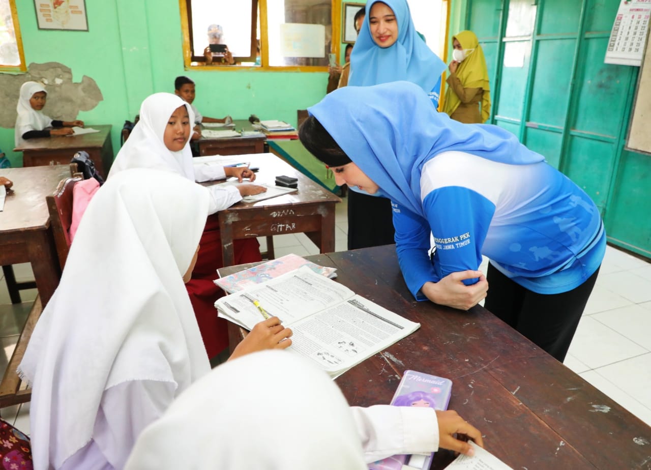 KANALSATU - Sebagai upaya menurunkan angka stunting di Jawa Timur, Ketua Tim Penggerak PKK Jawa Timur Arumi Bachsin Emil Dardak mengajak seluruh kader TP PKK tingkat desa serta wali murid untuk gencar menyosialisasikan kegiatan gemar minum susu, makan telor dan daging bagi pelajar Sekolah Dasar (SD).