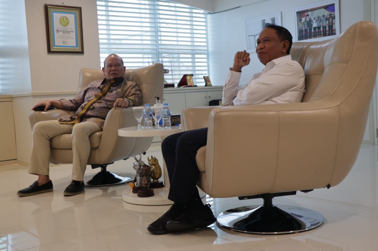 KANALSATU - Ketua Umum PB Muaythai Indonesia, AA LaNyalla Mahmud Mattalitti, bersilaturahmi ke Menteri Pemuda dan Olahraga, Zainudin Amali, di Kantor Kemenpora,
