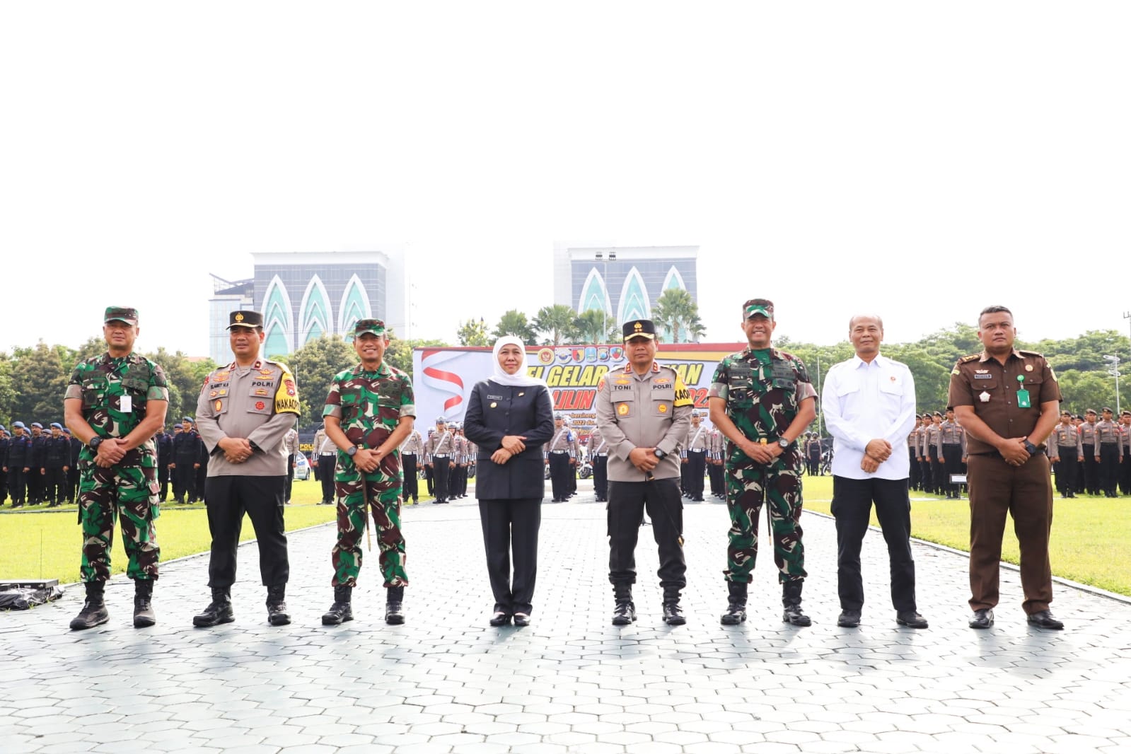 Dalam apel tersebut, Pembina Upacara dipimpin langsung Gubernur Jawa Timur Khofifah Indar Parawansa didampingi Pangdam V/Brawijaya Mayjen TNI Nurchahyanto, Kapolda Jawa Timur Irjen Pol Toni Harmanto, dan Wakapolda Jatim Brigjen. Pol. Slamet Hadi Supraptoyo.
