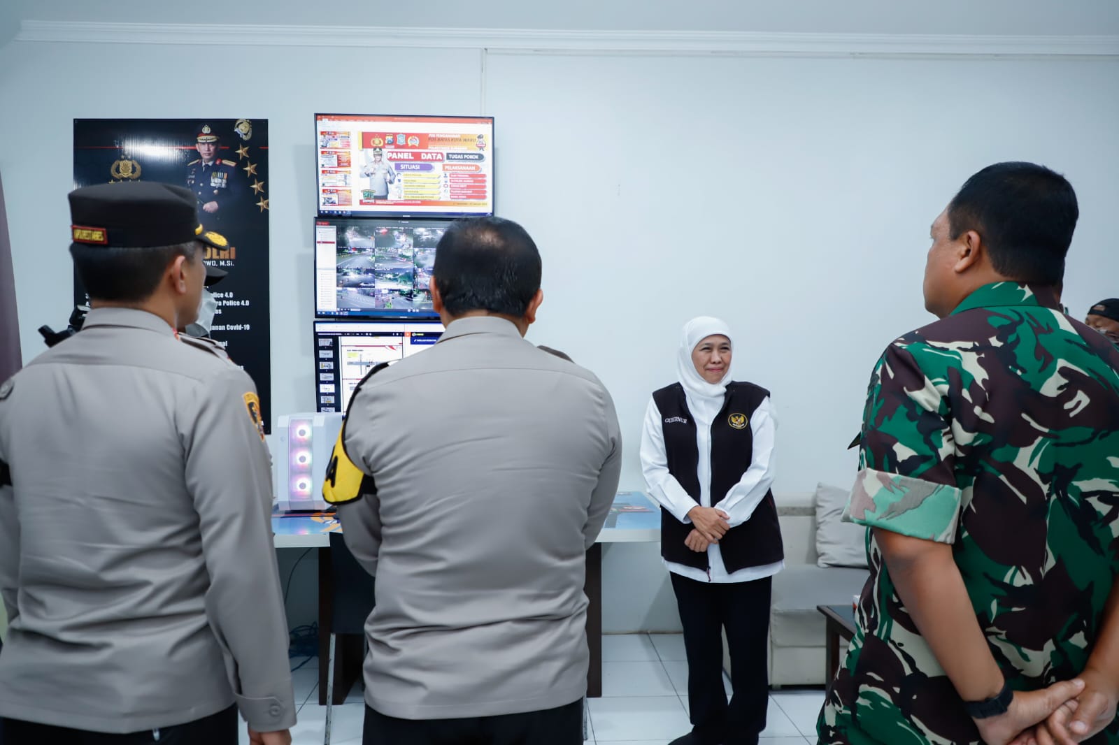 Tepat di malam pergantian tahun, Gubernur Khofifah bersama Kapolda Jatim Irjen Pol. Toni Hermanto dan Pangdam V/Brawijaya Mayjen TNI Farid Makruf meninjau sejumlah Pos Pengamanan (Pos Pam) Tahun Baru.