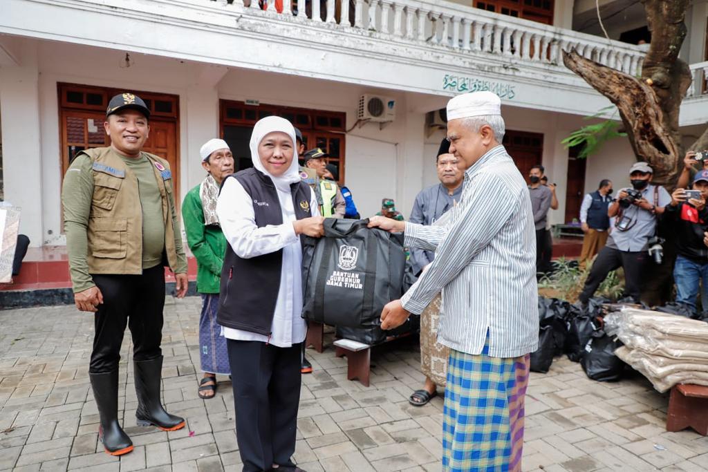 Melalui BPBD Jatim, Gubernur Khofifah juga memberikan beberapa bantuan diantaranya ratusan sembako, beras 300 Kg, Mie Instant 50 karton, Minyak Goreng 60 Liter, Sarden 230 Kaleng, Makanan Ringan (Snack) 10 Karton, 50 selimut, 50 sarung, Terpal 20 Lembar, Sepatu Boot 10 Pasang serta uang tunai.