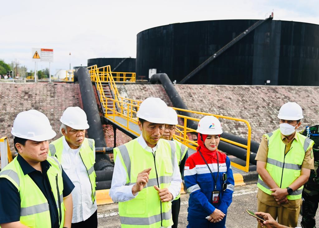 KANALSATU - Presiden Joko Widodo menyambangi Wilayah Kerja (WK) Rokan, Riau yang menjadi salah satu tulang punggung energi nasional. Dalam kunjungannya, Presiden meninjau langsung tangki timbun (tank farm) milik Pertamina Hulu Rokan(PHR) serta melihat kinerja pekerja Blok Rokan yang ada di Dumai.