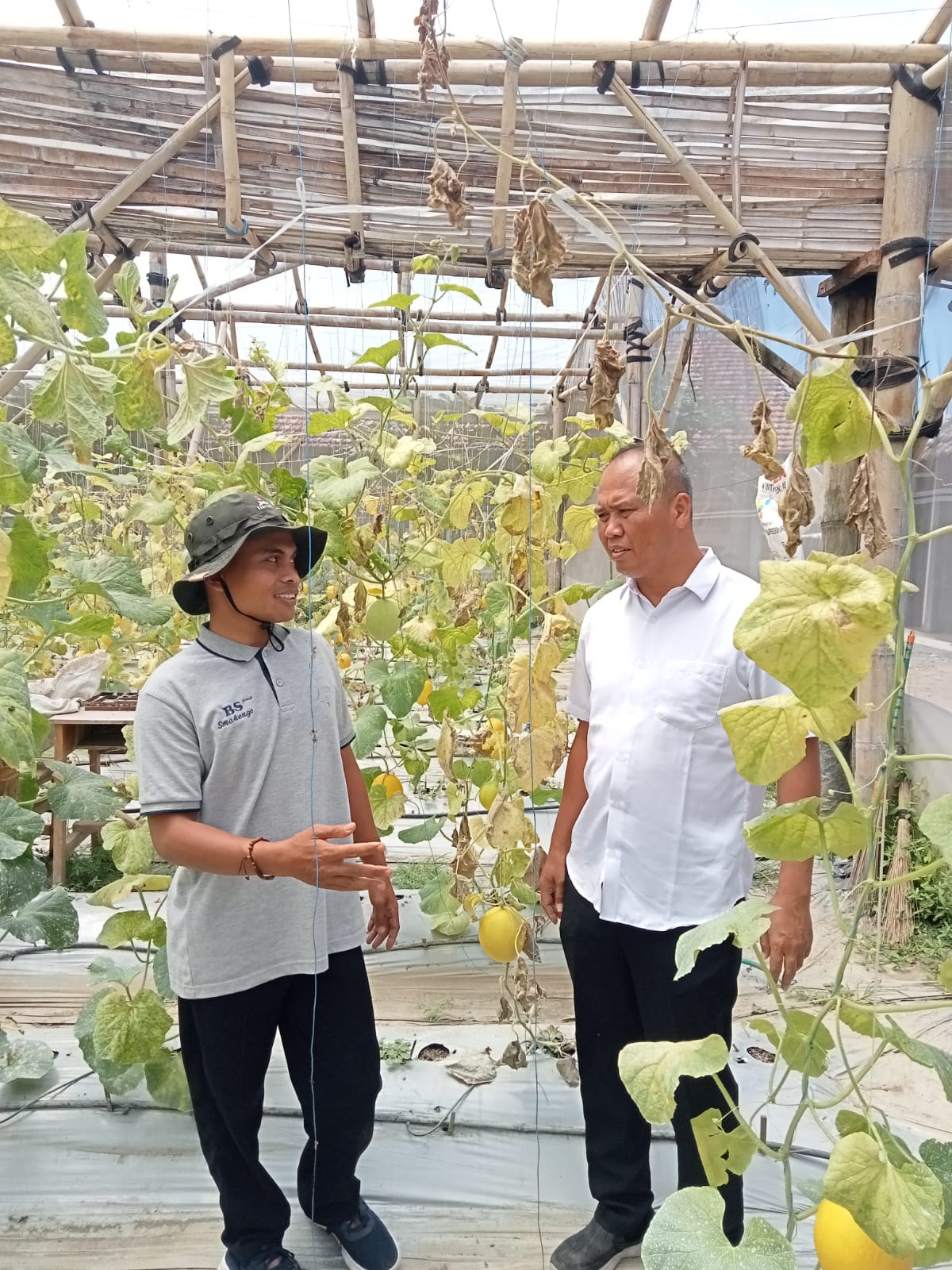 Tanaman yang dibudidayakan adalah buah melon jenis Golden Melon. Di lokasi tanam di lingkungan sekolah ada 300 buah dan di kebun ada 600 buah.