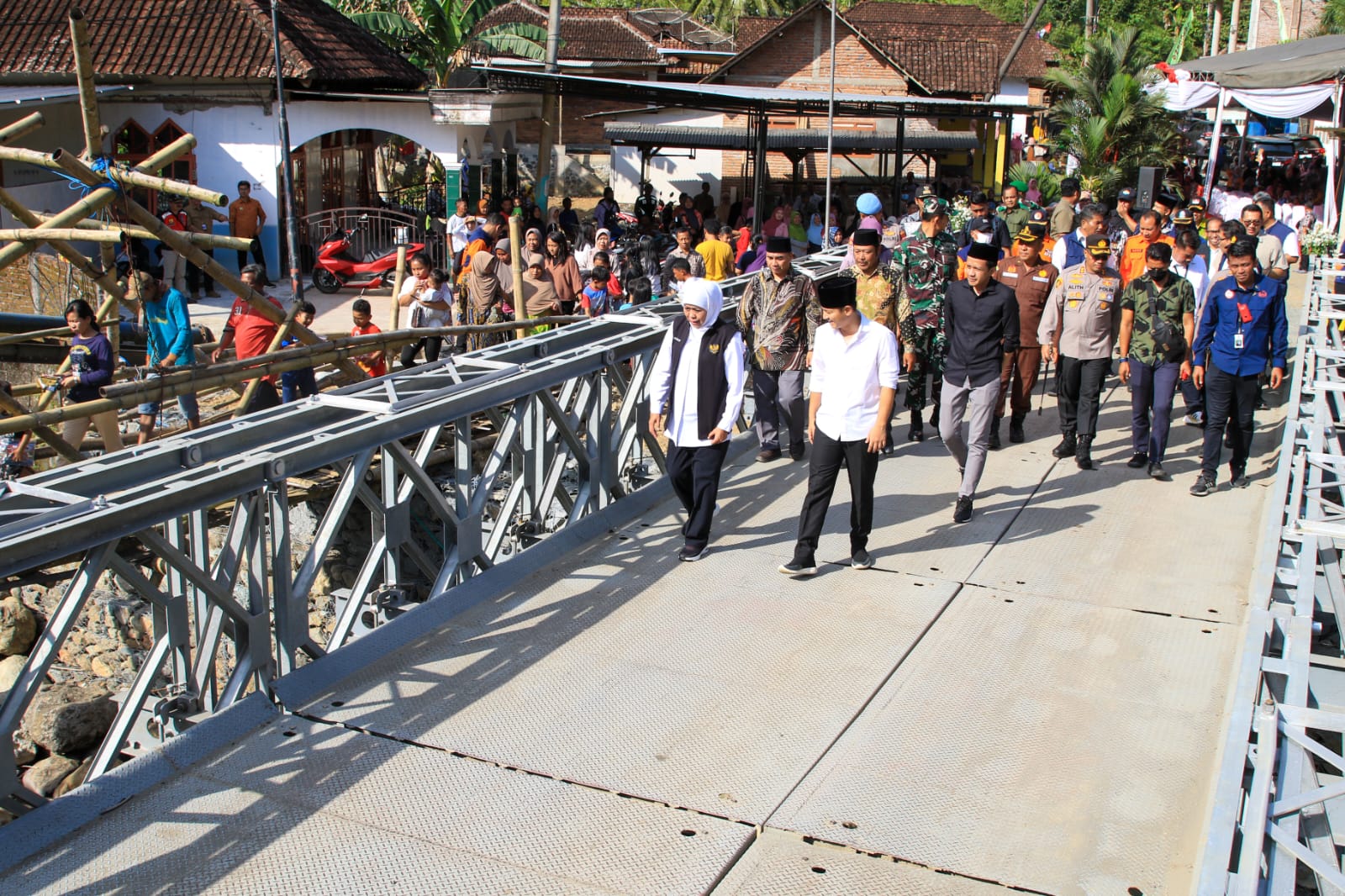 KANALSATU - Gubernur Jawa Timur Khofifah Indar Parawansa meresmikan dua jembatan bailey yang dibangun karena sebelumnya terputus akibat longsor. Keduanya berada di wilayah Kabupaten Trenggalek, yakni jembatan Mukus di Desa Sawahan Kec. Watulimo, dan Jembatan Bendoroto di Desa Bendoroto Bangun, Kec. Munjungan.