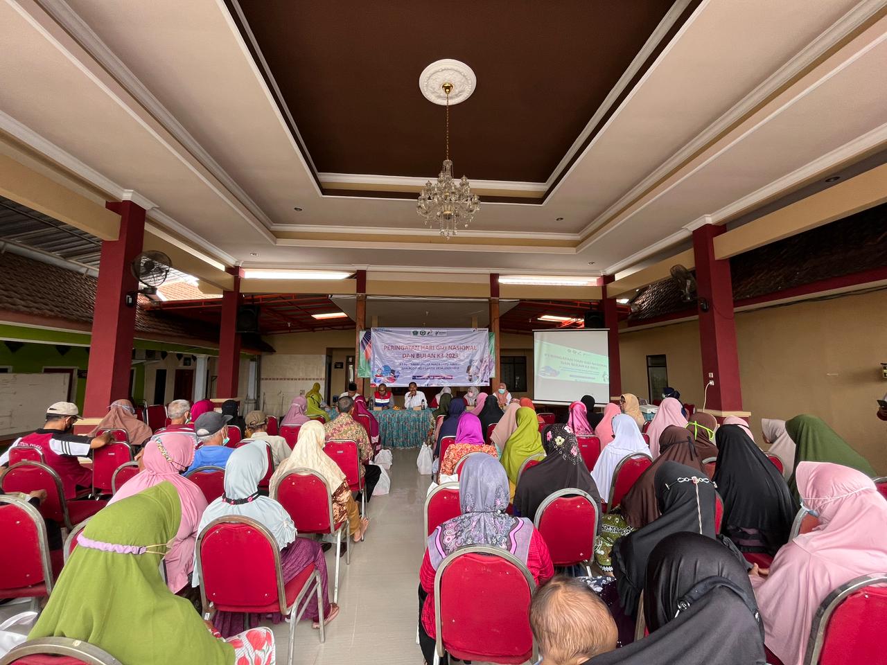 Sebanyak 69 peserta lansia hadir mengikuti kegiatan dengan antusias mulai dari senam lansia hingga penyuluhan tentang kebutuhan gizi lansia yang disampaikan oleh Bidan Niken selaku pemateri dari tenaga medis Puskesmas Kecamatan Sedati.