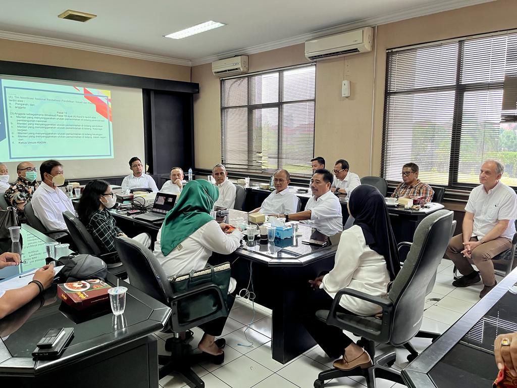 KANALSATU - Kamar Dagang dan Industri (Kadin) Jawa Timur bersama Kadin Institute melakukan percepatan implementasi Peraturan Presiden (Perpres) nomor 68 tahun 2022 dengan membuat rumusan grand design revitalisasi pendidikan vokasi dan pelatihan vokasi.