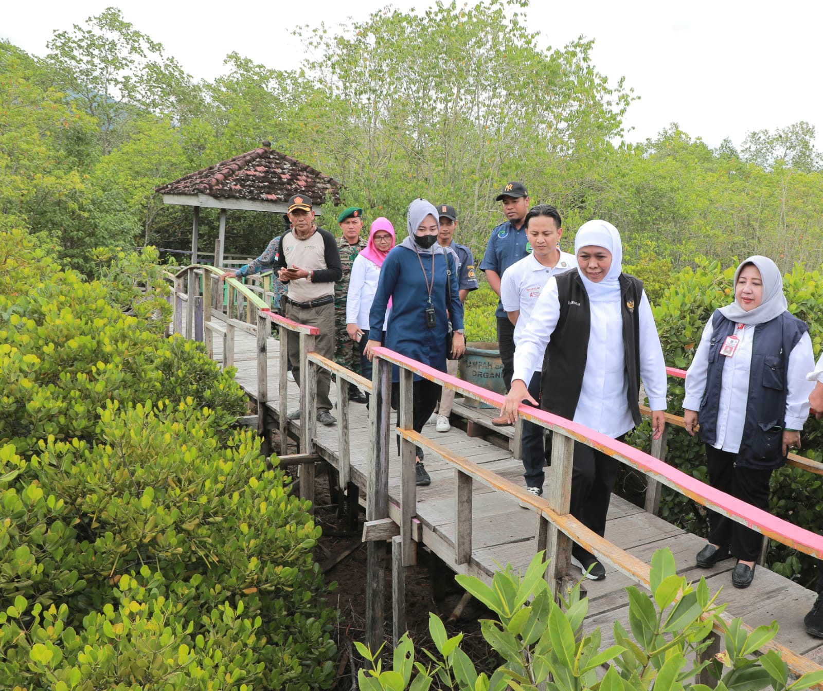 KANALSATU - Gubernur Jawa Timur Khofifah Indar Parawansa menyambut positif festival magrove keempat yang akan dipusatkan di Hutan Mangrove Cengkrong, Trenggalek pada Maret 2023 mendatang. Menyongsong momentum tersebut, Gubernur Khofifah bersama Bupati Trenggalek Nur Arifin, alias Cak Ipin meninjau progres pelestarian ekosistem hutan mangrove Cengkrong di kawasan Prigi, Trenggalek, Jumat (17/2/2023).