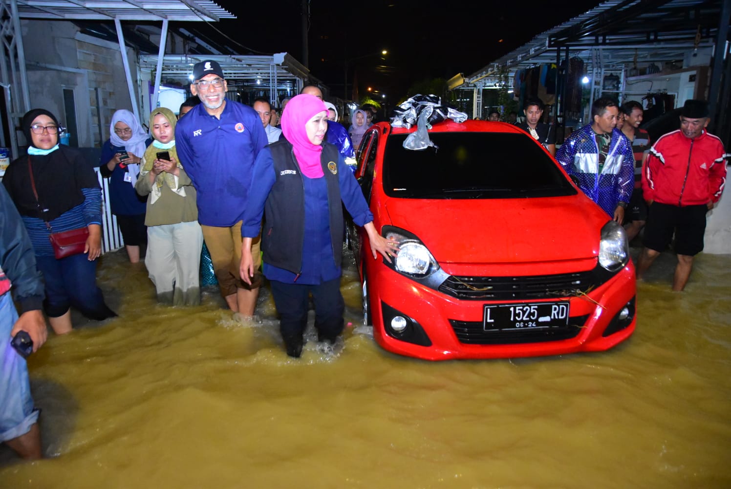 KANALSATU - Gubernur Jawa Timur Khofifah Indar Parawansa gerak cepat meninjau lokasi terdampak banjir akibat tanggul Mojosarirejo yang jebol pada Rabu (22/2/2023) dinihari.