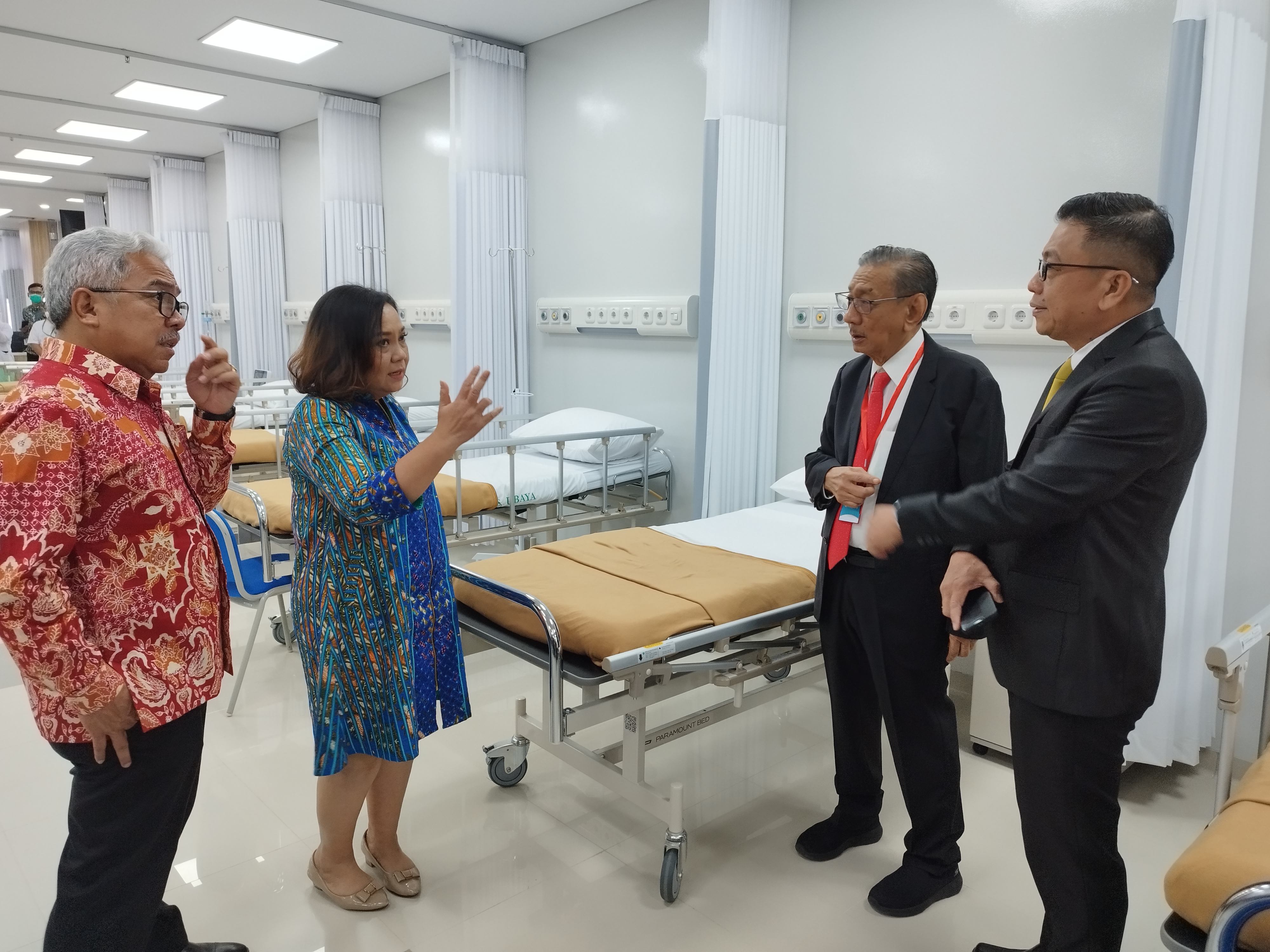 (kiri-kanan) Himawan Estu Bagijo, Kepala Dinas Tenaga Kerja dan Transmigrasi (Disnakertrans) Jatim; dr. Agnes Widayu Estiningsih, Direktur RS Ubaya; Anton Prijatno, Ketua Yayasan Ubaya; dan Dr. Ir. Benny Lianto, M.M.B.A.T - Rektor Ubaya meninjau Instalasi Gawat Darurat di RS Ubaya, Sabtu (4/3/2023).