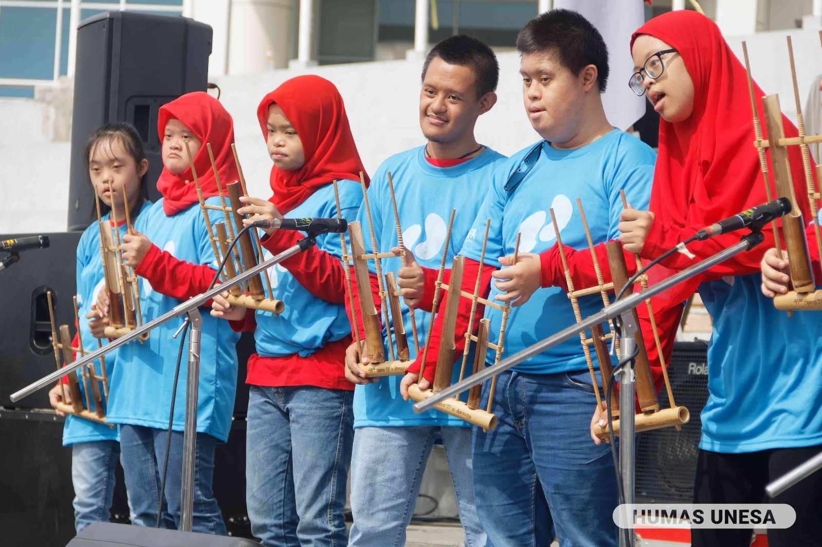 KANALSATU - Ribuan pelajar dari berbagai sekolah inklusi, dan sekolah luar biasa atau SLB memadati halaman Universitas Negeri Surabaya (UNESA) Kampus Lidah Wetan, Surabaya, Minggu, (5/3/2023).