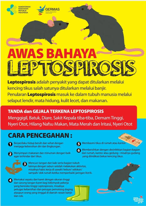 ”Tak hanya itu, penularan Leptospirosis bisa terjadi melalui kontak erat dengan binatang ternak yang terinfeksi dan terjadi pada pekerjaan yang berpotensi kontak dengan sumber infeksi.” paparnya.